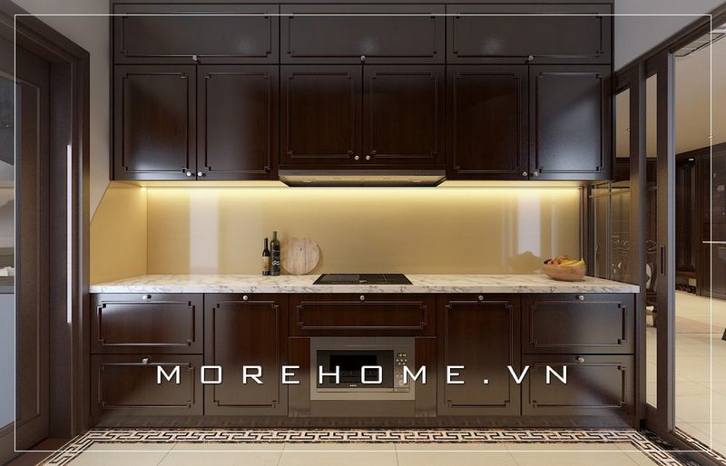 Thiết kế phòng bếp biệt thự với nội thất gỗ cùng thiết bị phòng bếp bếp hiện đại tiện nghi