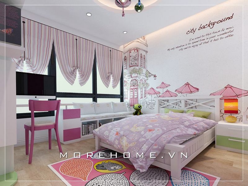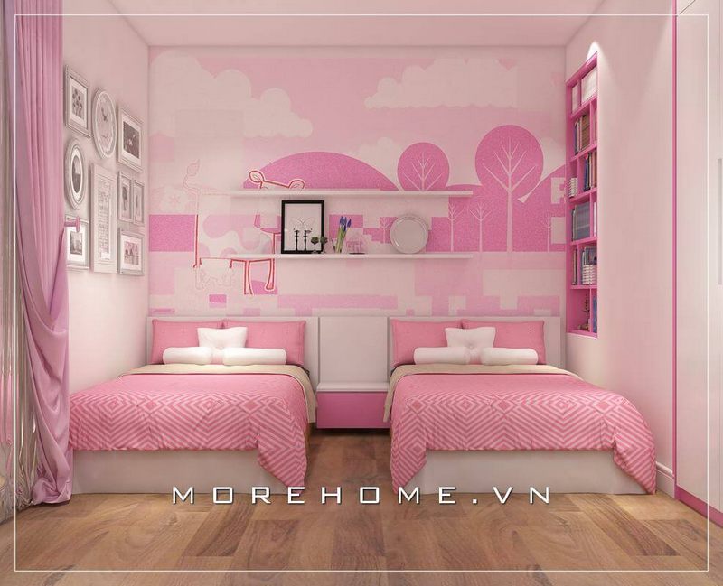 Giường ngủ bé gái hiện đại được thiết kế đầy độc đáo và ấn tượng tạo điểm nhấn cuốn hút cho cả không gian căn phòng