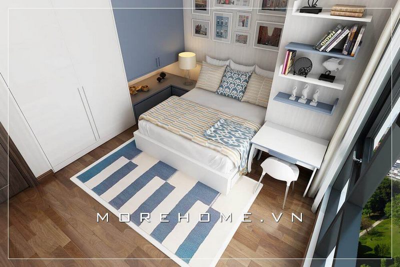 Thiết kế giường ngủ gỗ công nghiệp với gam màu trắng tinh tế và gọn gàng, giúp bé có những giấc ngủ ngon lành sau những giờ học tập, vui chơi